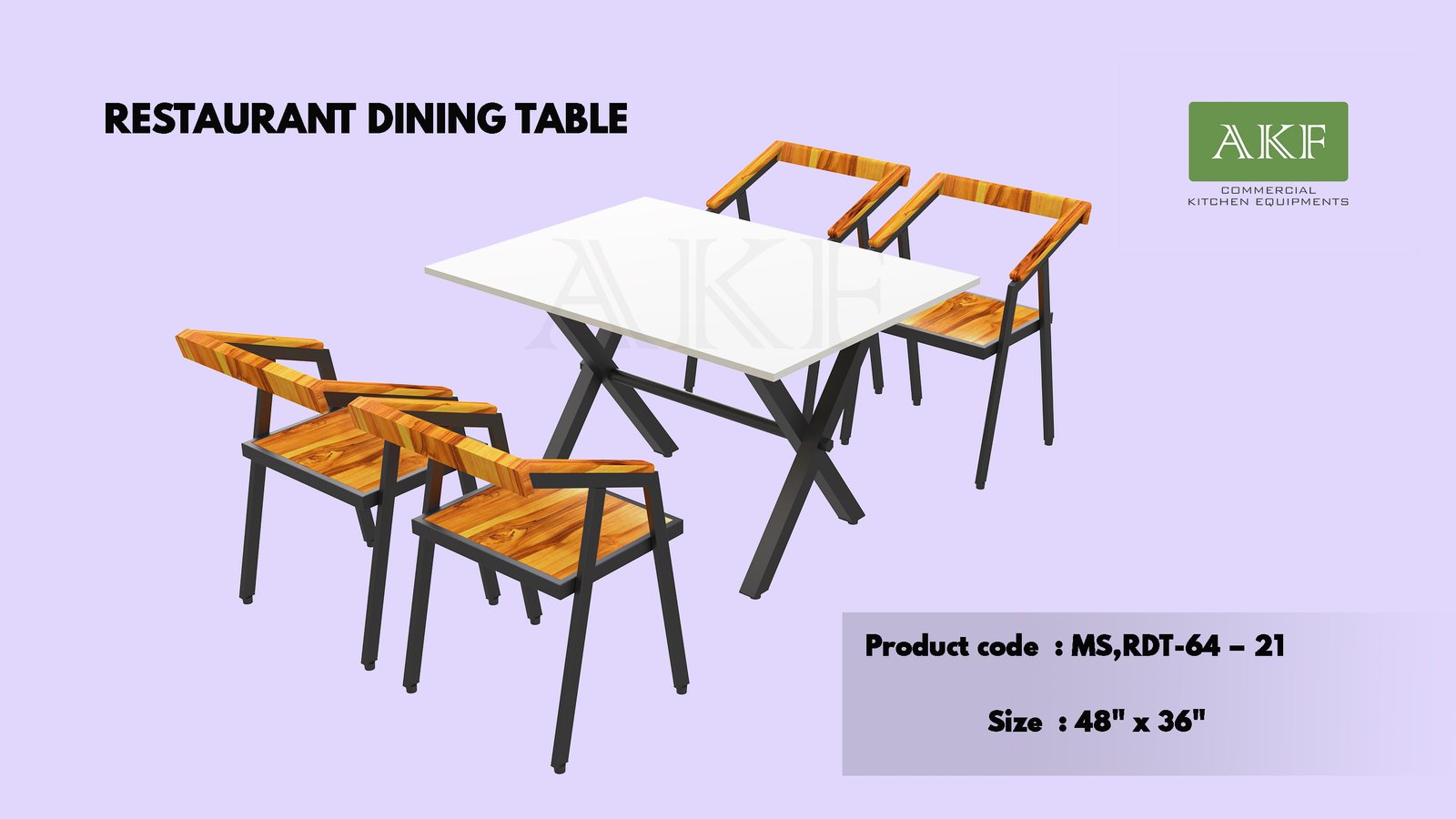 | Restaurant Dining Table (4 seater) – 1200 x 750 x 750 MM |